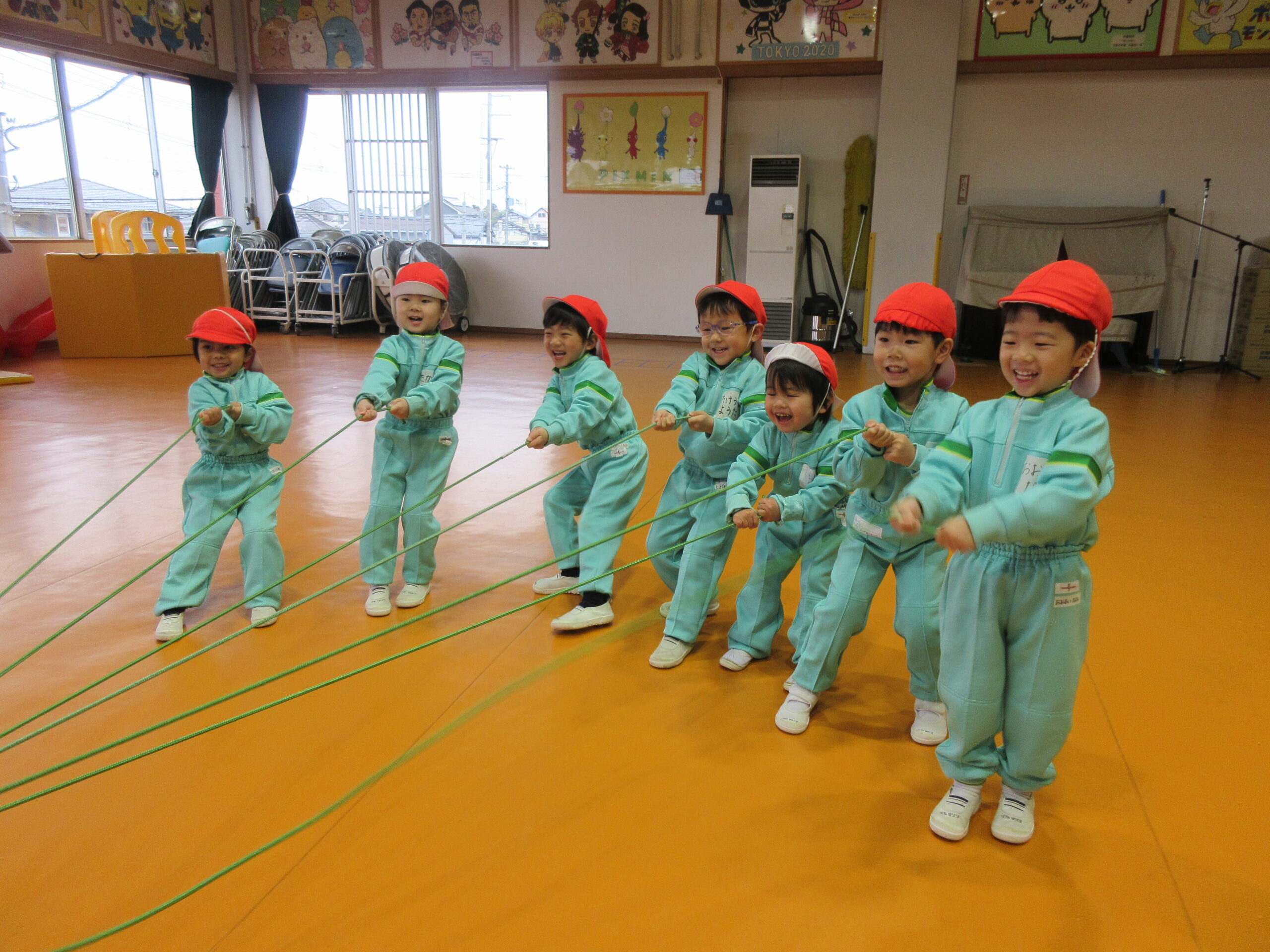 今年度最後の体育!力を合わせて縄引き対決をしました。1年で団結力を深めたいちごさん♡頑張ったよ☺