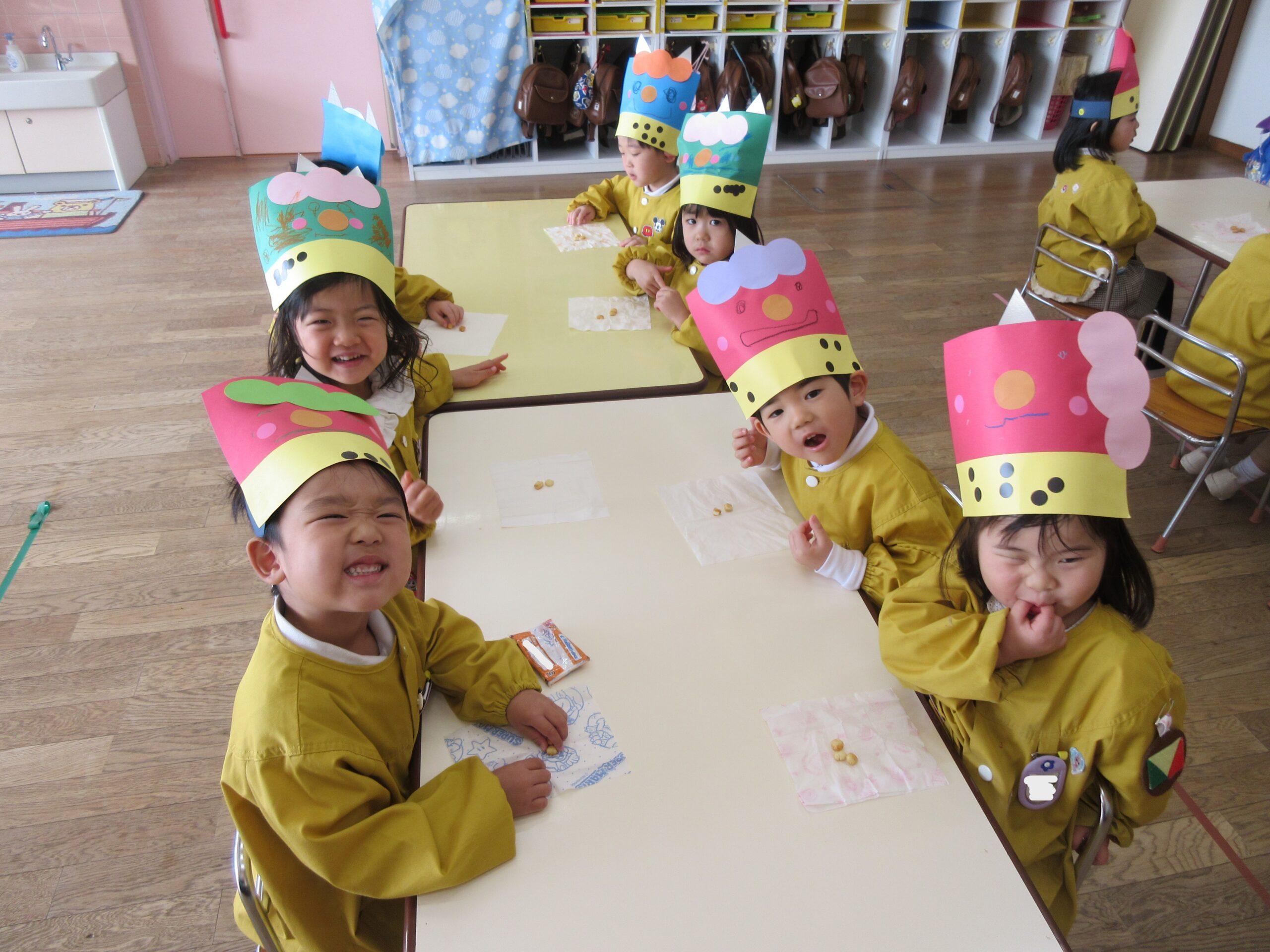 節分の会ではみんな一生懸命心の中の悪い鬼を退治しました‼豆まき後は美味しいきなこおかきを食べましたよ♡